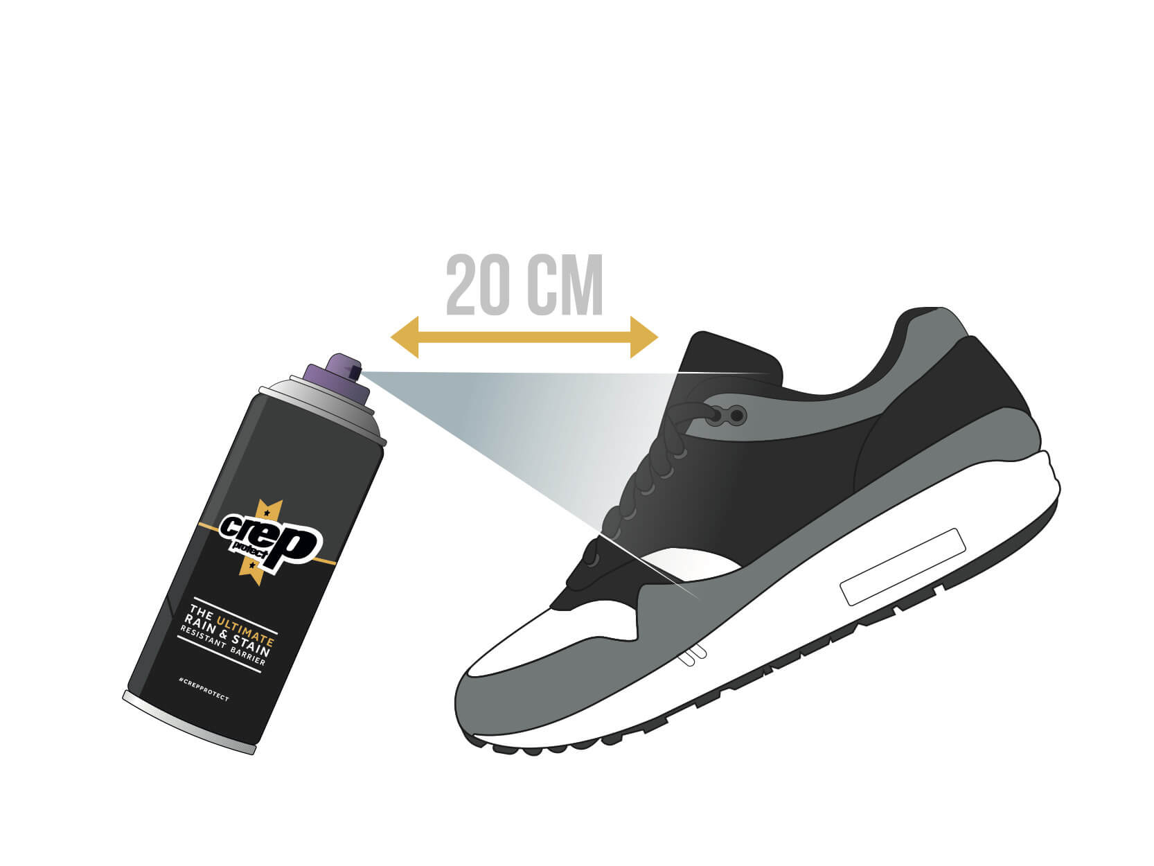 A. スプレーをする前に、靴がきれいでドライなことを確認して下さい。 20㎝の距離から均一にスプレーをしてください。その際は過剰にスプレーをして靴を濡らし過ぎないように注意してください。10分の乾燥でも問題無いですが、気温や湿度によって環境が変わってくるので30分間乾燥させることを推奨しています。同じ作業をもう一度繰り返して完成です。
