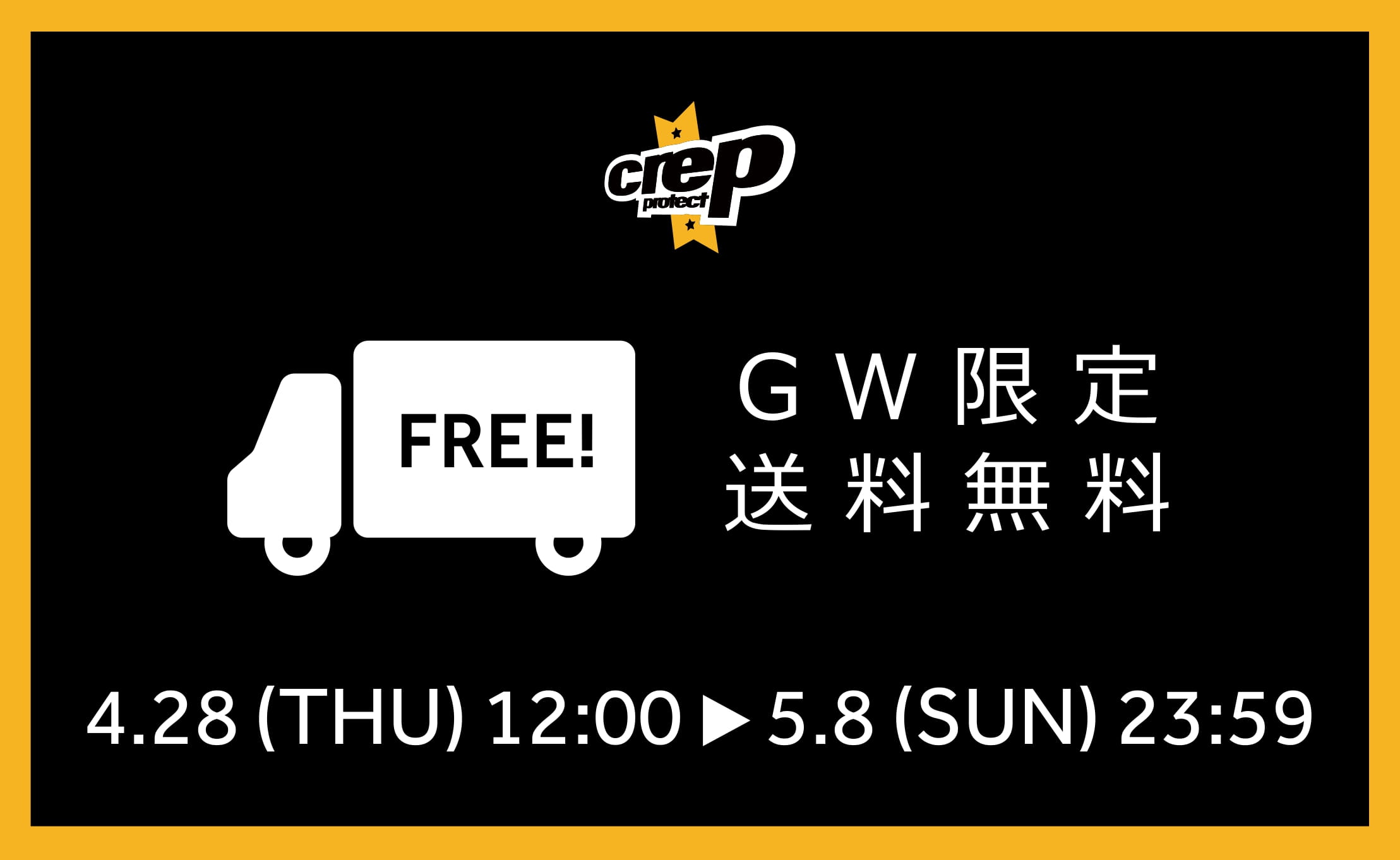 Crep Protect日本公式サイトにて、通常¥4,400以上のお買上げで送料無料のところ、上記期間中、いくらのお買上げでも送料無料!