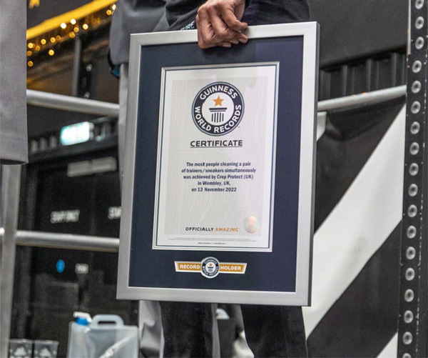 ギネス記録達成と同時に、Crep Protectの「靴の貧困と廃棄を減らすために貢献したい」という思いを形にしました。