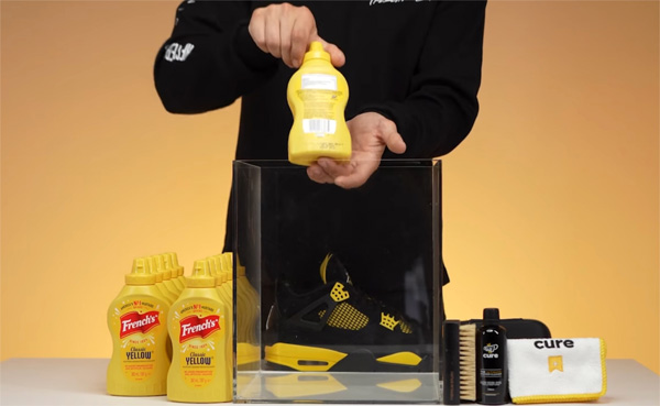 マスタードに浸されたAJ4“Thunder”をCrep Protectシューケアキットで蘇らせます!