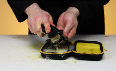短時間で素早く汚れを取り除き、効率よくクリーニングができるのはもちろんのこと、色が変わっていく様を楽しみながら、お気に入りのシューズをお手入れできる優れものです。