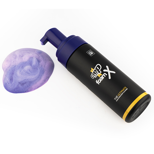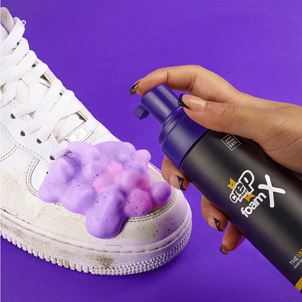 シューズクリーニングの常識を覆す、泡タイプのシューズクリーナーです。むらさき色の泡が白く変化しながら、シューズの汚れを浮き上がらせてきれいにします。