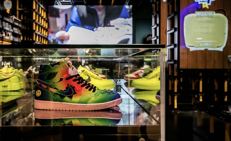 また、この店舗では、「Sneaker Ninja」と呼ばれるゲームを通じて、毎月、最も人気のあるスニーカーを獲得するチャンスを提供しています。ゲームへの参加は無料で、店内のタッチスクリーンで行うことができます。 -