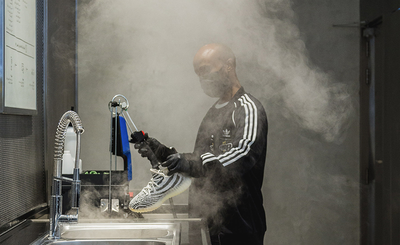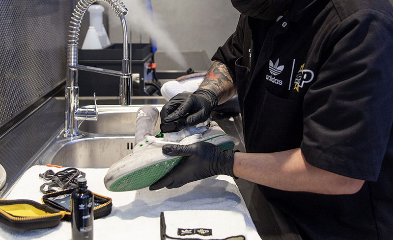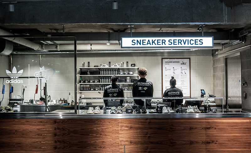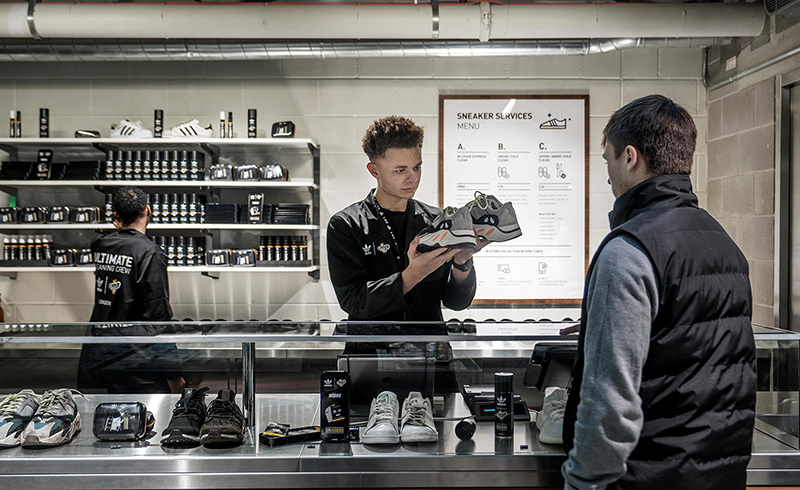 ロンドンのオックスフォード・ストリートにオープンしたアディダスの新店舗では、プロの技術者によるスニーカーのクリーニングを受けることができ、メニューの中から自分のスニーカーに合ったサービスを選ぶことができます。